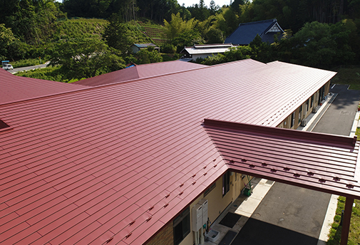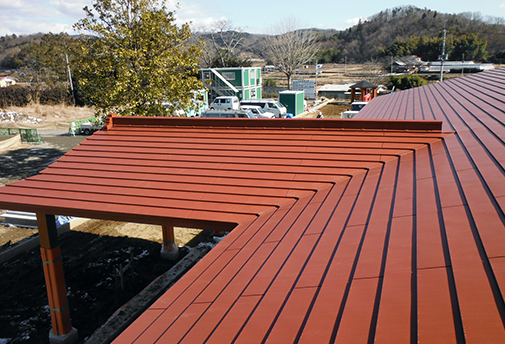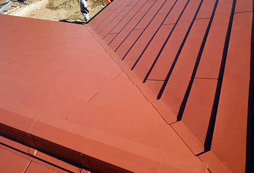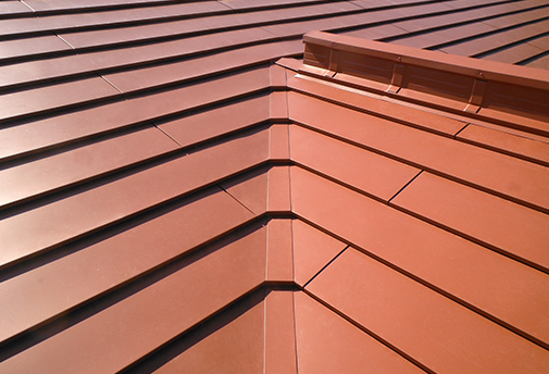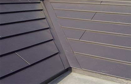 そのため、谷部には「廻し谷キャップ」納め方式を採用。さらに、その寸法も最小の幅40cmとして、「谷部」の存在を可能な限り感じさせない施工を行う事になりました。