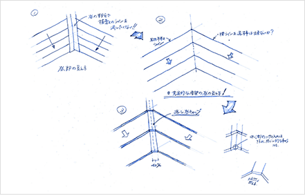 この谷部の意匠をいかに処理するかが、屋根設計の大きな課題でした。