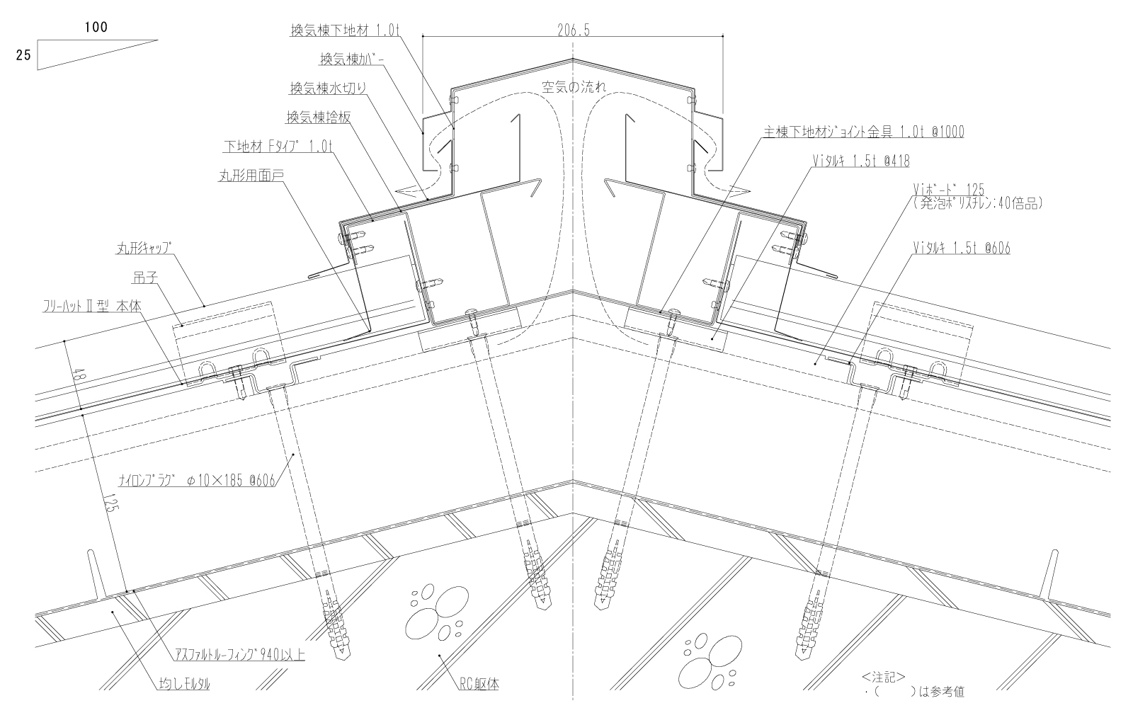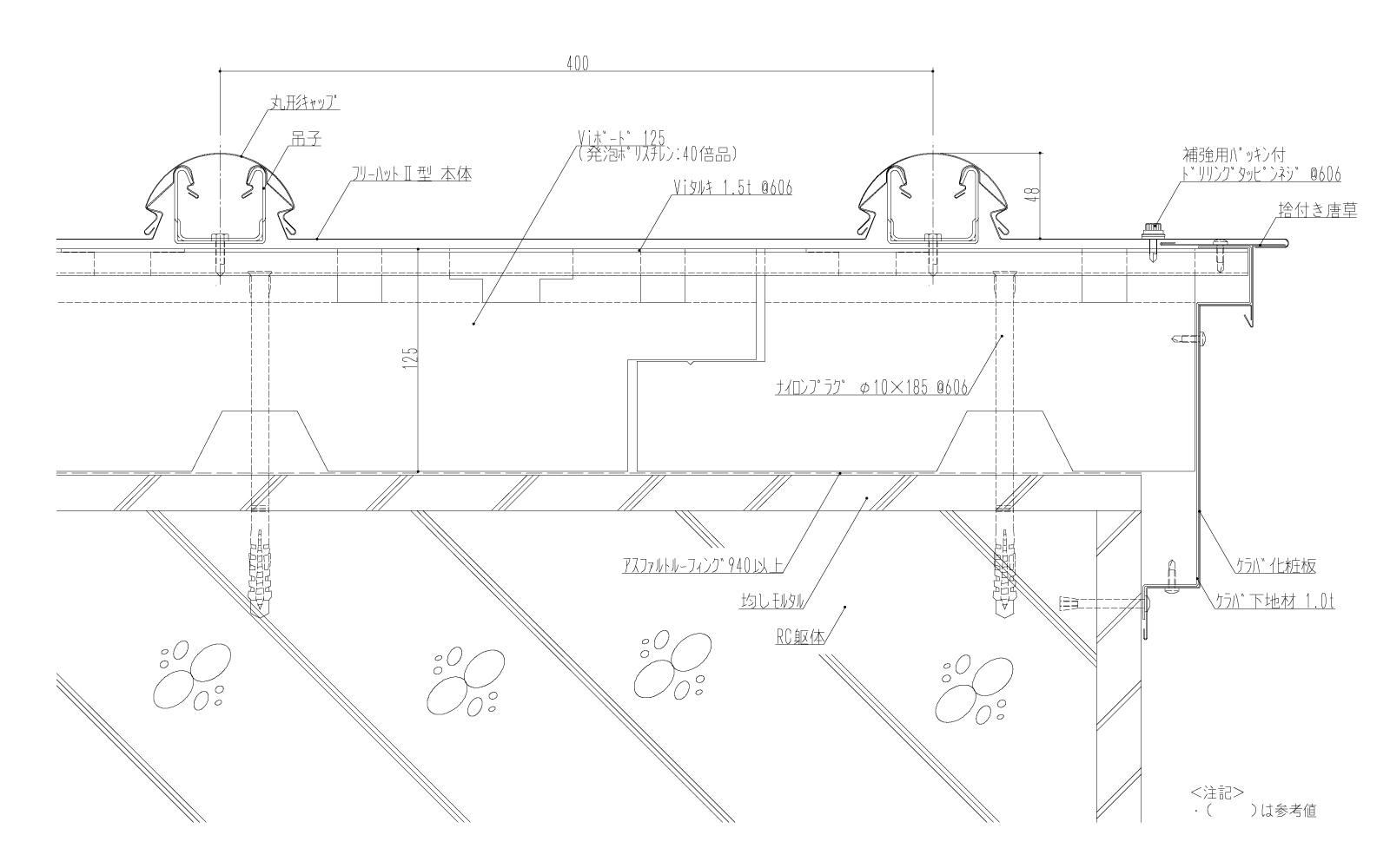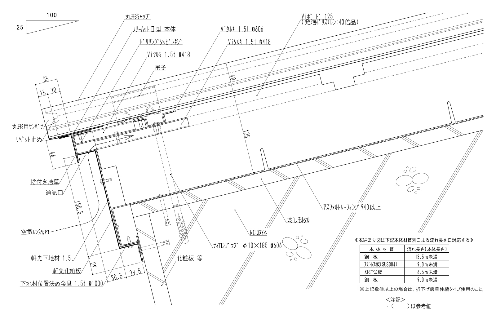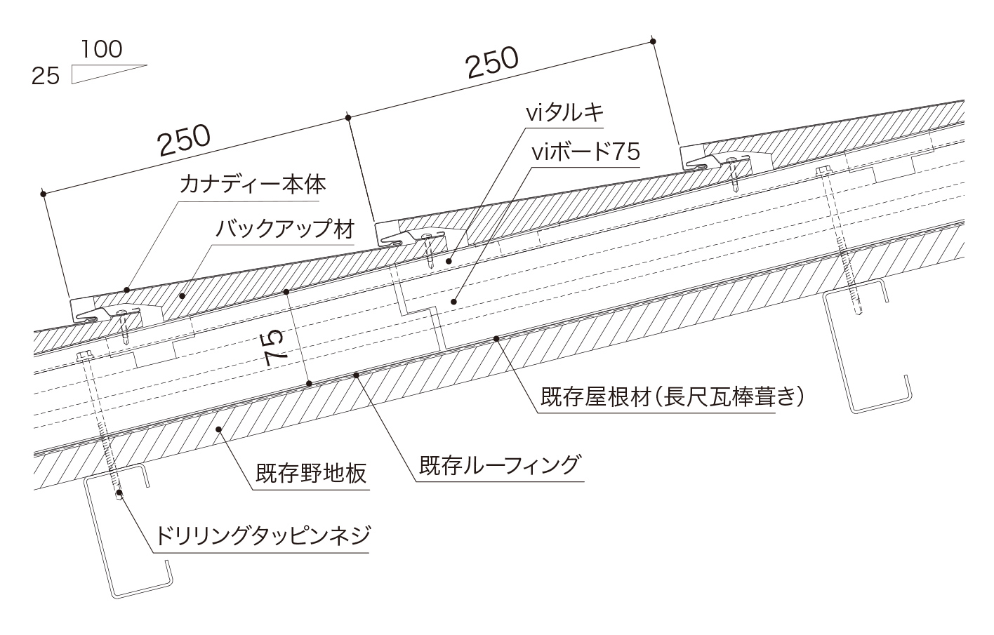カバー工法 (長尺瓦棒)での納まり(S造)
