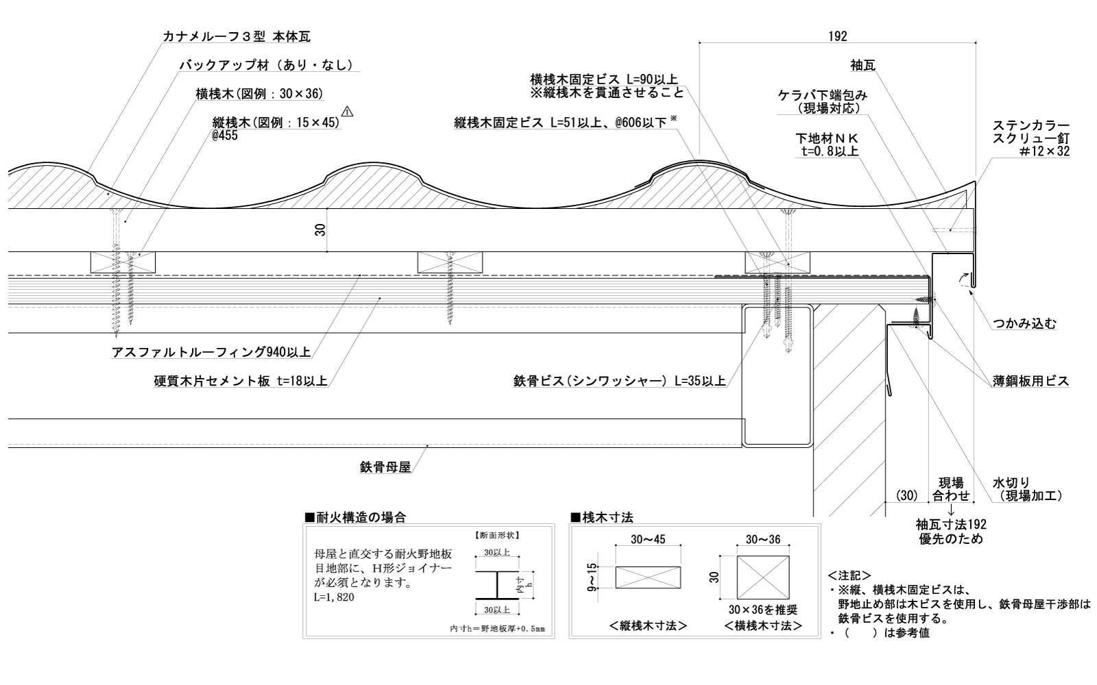 葺材【めっき鋼板製、ステンレス鋼板製、銅板製又はチタン板製】・ポリスチレンフォーム板・硬質木片セメント板表張/軽量鉄骨下地屋根