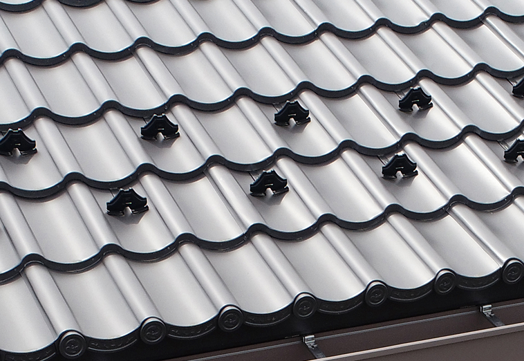 一見しただけでは金属瓦とはわからないほど土瓦の意匠性を再現。柔らかな波の形状で美しいフォルムは和の趣を演出します。重量は瓦の1/13※と軽量のため地震・台風による被害も抑えられます。