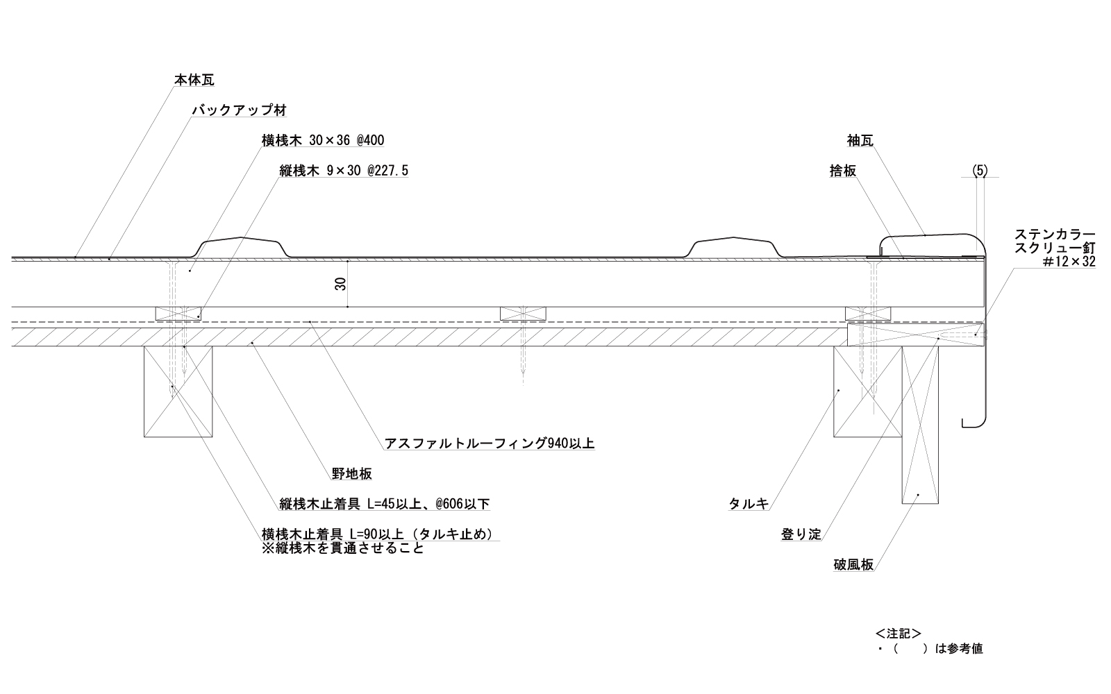 葺材【めっき鋼板製、ステンレス鋼板製、銅板製又はチタン板製】・ポリスチレンフォーム板・硬質木片セメント板表張/軽量鉄骨下地屋根