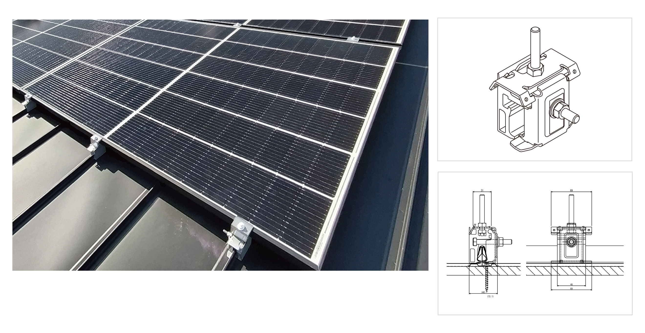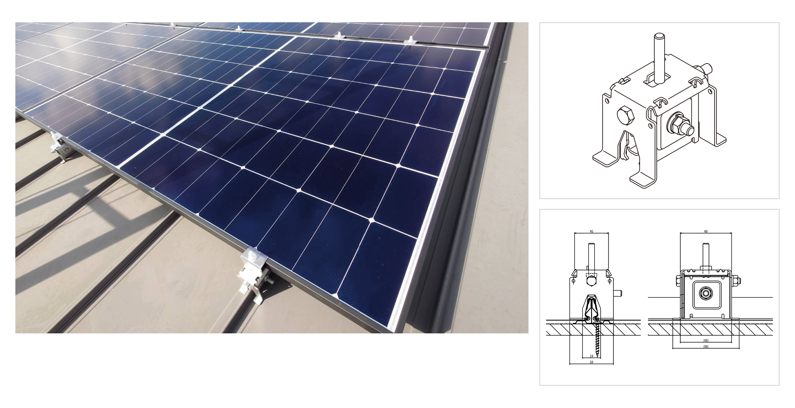 ◎必要個数:4個〜/モジュール(設置条件により変動) ◎材質:アルミめっきステンレス、ステンレス、アルミ