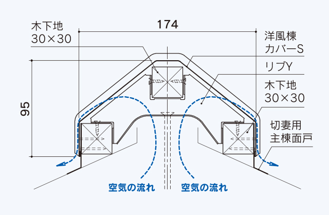 ポイント 建物を長持ちさせる「換気」システム。自然換気により屋根裏の熱・湿気を排出します。