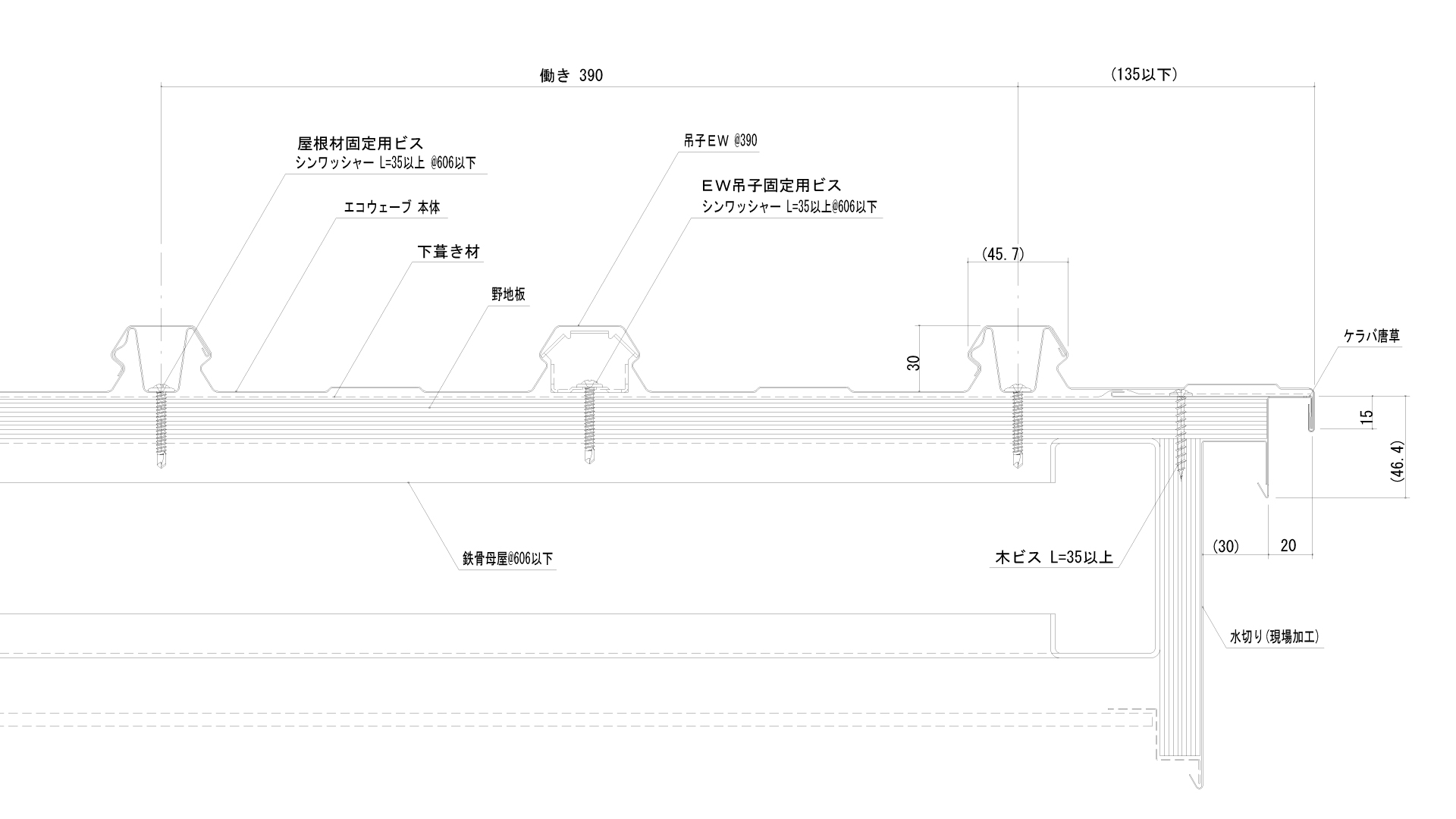 有効寸法 製品ピッチ 390mm(山ピッチ195mm)