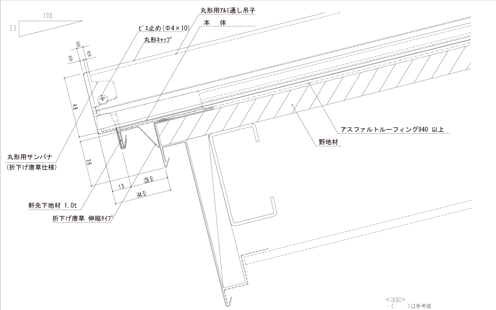 - 対応勾配(定尺) 10/100~