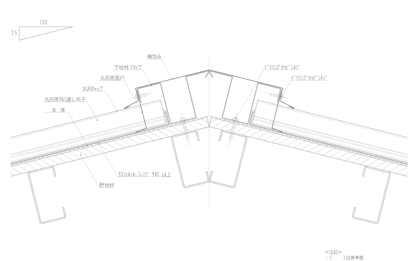 - 対応勾配(長尺) 5/100~