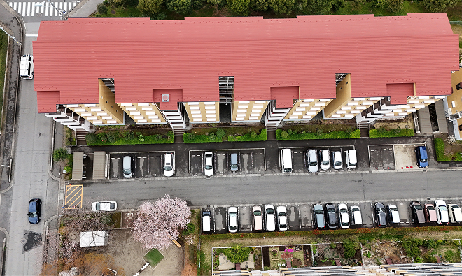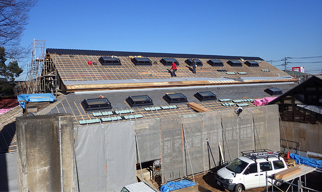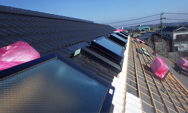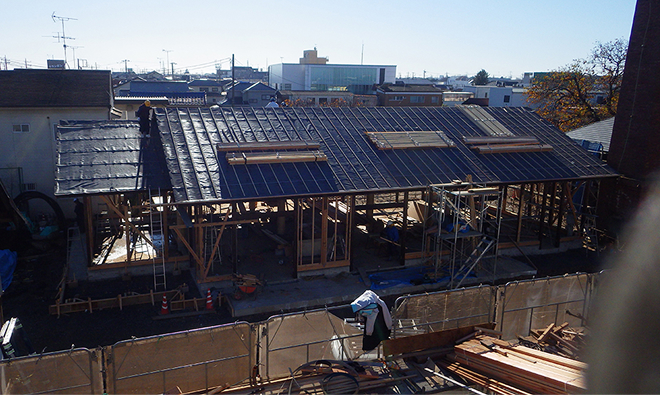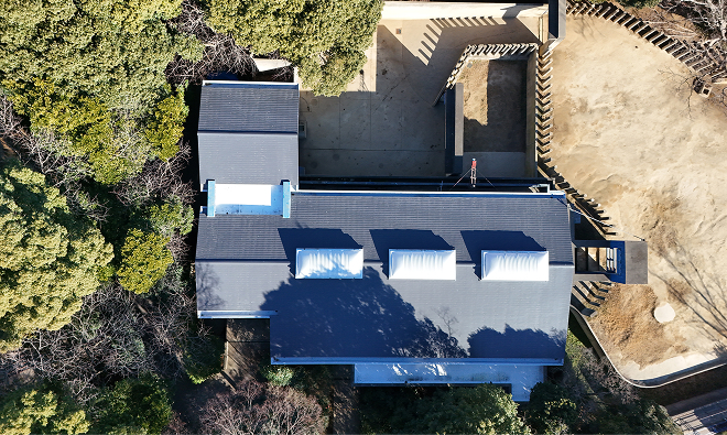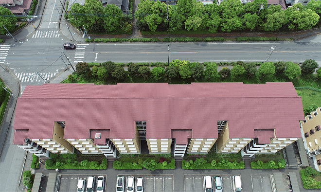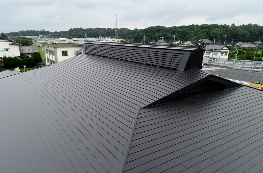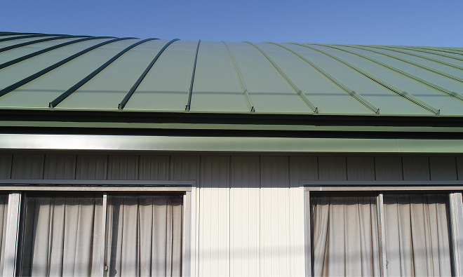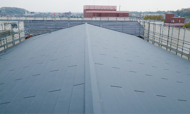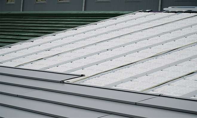 K保健センター【横葺き・太陽光一体型屋根】タイマルーフM型・カナメソーラールーフ・V2H