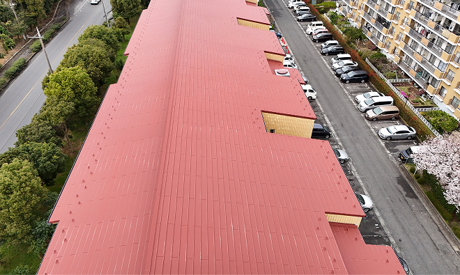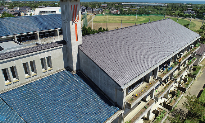 K児童センター【太陽光一体型屋根・縦葺き】カナメソーラールーフ・スタンディングロック