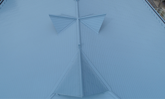 Mコミュニティセンター【縦葺き・通気断熱】スタンディングロック・Vi75