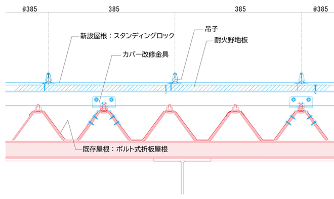 A小学校屋内運動場【縦葺き】瓦棒カバールーフ