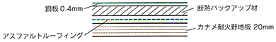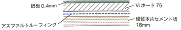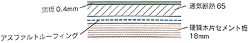 - 裏打材[合成樹脂系]・葺材[めっき鋼板製又はステンレス鋼板製]・ポリスチレンフォーム板・硬質木片セメント板表張/軽量鉄