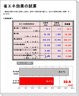 断熱による温度差や電気料金換算での試算が出来ます。