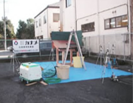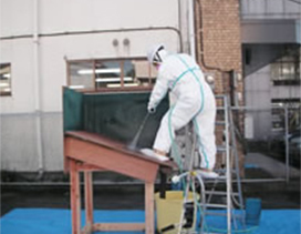 屋根を塗装する時に行われる高圧洗浄により、アスベストがどの程度飛散するかを実験により測定しました。